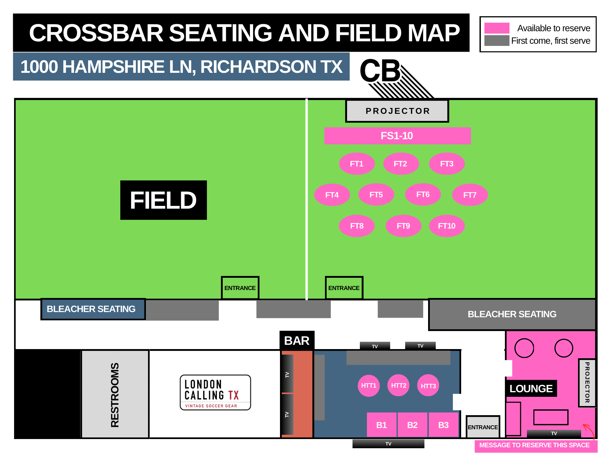 Crossbar is the home to the best watch parties in Dallas! Every game will be shown live with select games having full facility watch parties. Reserve a table to guarantee a spot or come early to sit in the free seating areas which includes the bar counters, red bleacher seating, field areas where you can bring your own chair or blanket. A custom Crossbar Dallas World Cup scarf is included in high top, booth, and field table seating reservations.